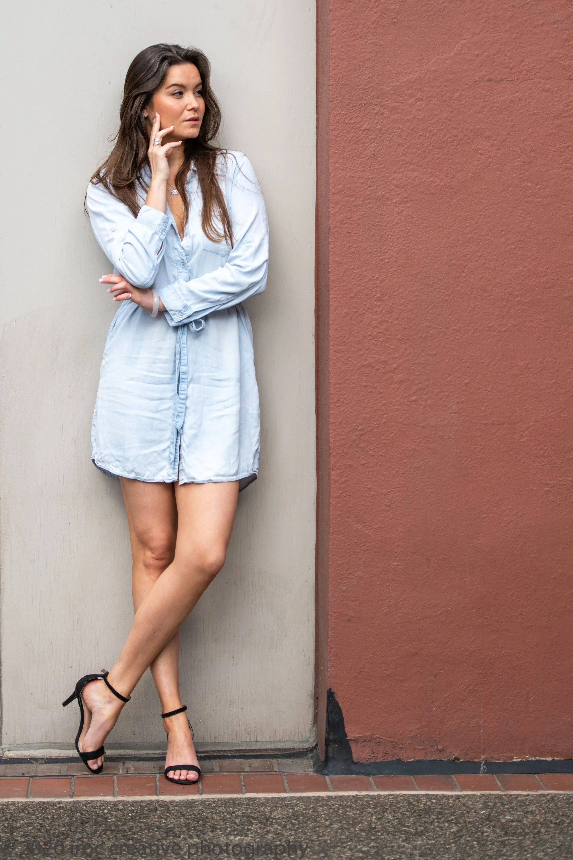 Creative portrait photography that captures all sides of you. This image of Smooshie in front of a water park downtown. Book Consultation Fashion Portrait Fashion Portraits